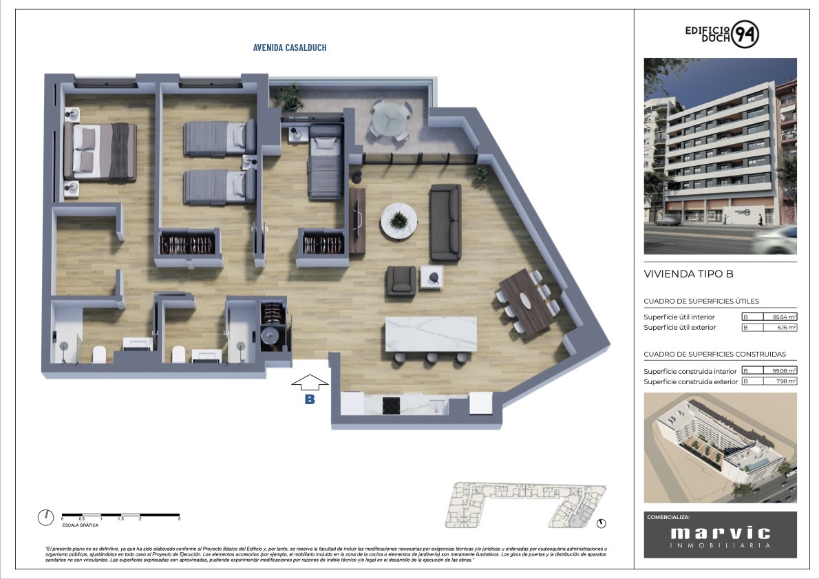 En Edificio Duch 94, en Castellón, tienes mucho más que una vivienda de 3 dormitorios. Con piscina panorámica en la terraza, jardines verticales y dormitorios llenos de luz, con una distribución que aprovecha cada espacio y terrazas para disfrutar.